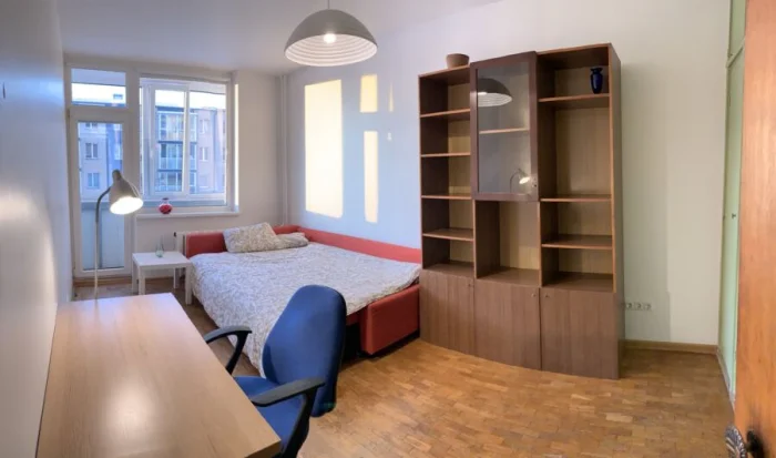 - Гардеробная. Встроенный шкаф на балконе освободит спальню.