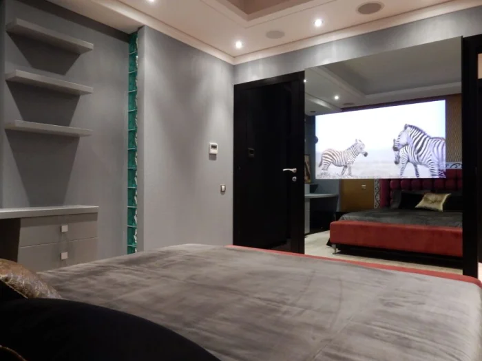А представьте телевизор, подвешенный не напротив кровати, а прямо над ней? Смотрится футуристично! Но здесь критически важна надежность креплений и небольшой вес самой панели.