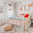 Повторить цвет или узор акцентной стены в текстиле на кровати — гениальный по простоте приём. Он связывает пространство воедино, создавая цельный и продуманный образ.