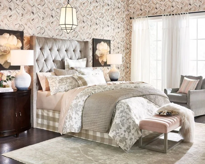 К голубым стенам подойдёт бирюзовый или мятный текстиль. К бежевым — кремовый, карамельный или молочно-кофейный. Но цвет — это только полдела. Решающий фактор — стиль вашей спальни. И вот тут начинается самое интересное.