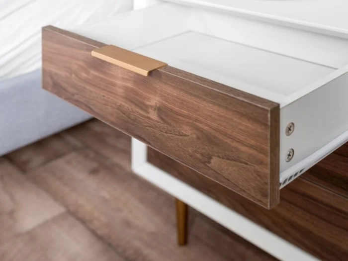 Классика — две симметричные тумбы. Но современный подход более гибкий. Можно поставить одну, но более выразительную. Или даже заменить тумбу на узкую консоль или полку. Главное — соблюдать стилистику: чёткие линии, никакого лишнего декора.
