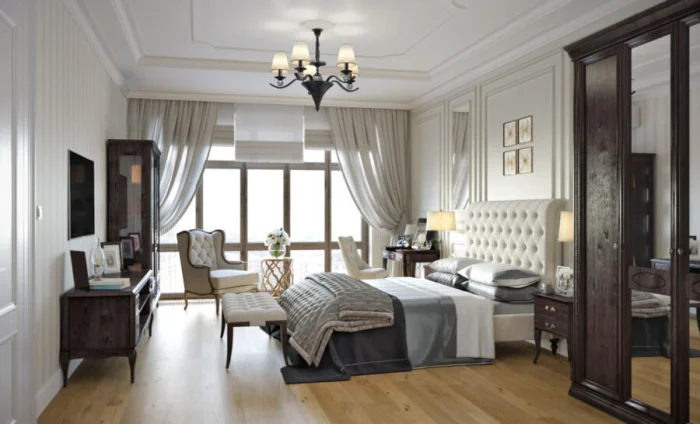 Если же берёте готовый комплект, убедитесь, что он пропорционален площади спальни и не создаёт эффекта захламлённости.
