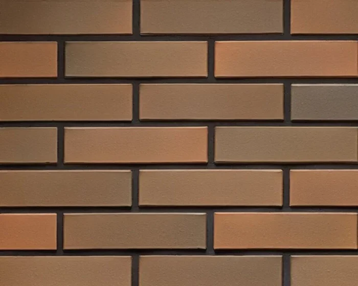 Терракотовые, красные, коричневые оттенки. Гладкая или слегка текстурированная поверхность. Стандартный или узкий формат. Кладка часто с расшивкой контрастного цвета (белый раствор).