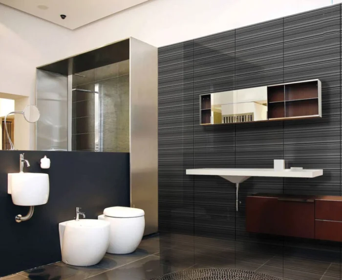 - Керамика. Практичная красота. Может имитировать кирпичную кладку, камень или дерево, оставаясь при этом влагостойкой и простой в уходе.