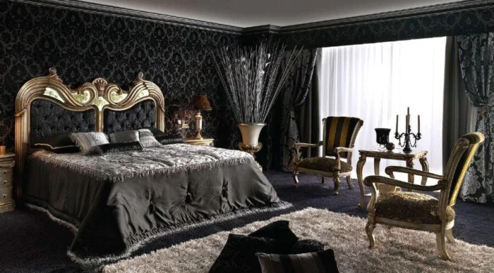 Создать готическую гостиную в хрущёвке почти невозможно. Всё упирается в высоту. Но если потолки позволяют — вперёд! Основу составят несколько выразительных предметов: резной диван, пара кресел с высокими спинками, поставленные по центру. Они станут главными героями на фоне нейтральных, возможно, фактурных стен под камень.