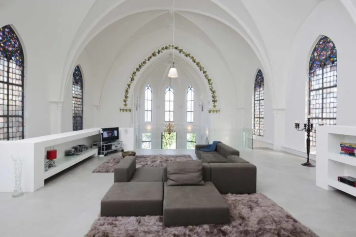 - Архитектурность. Стрельчатые окна, сводчатые потолки, арки.