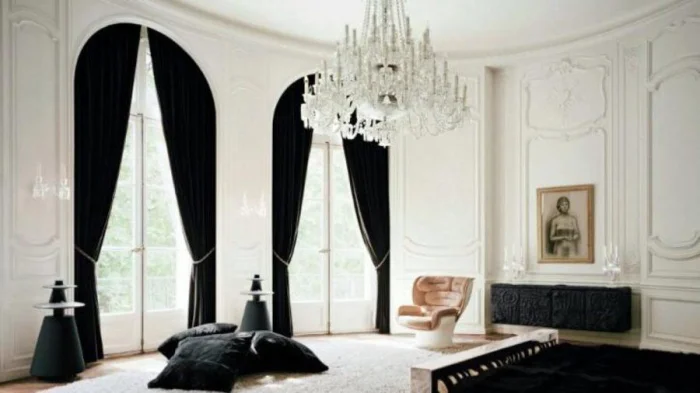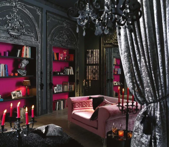Вот главное открытие! Исторически готические интерьеры часто были светлыми: бежевые, кремовые, молочные стены служили фоном для тёмной мебели. Да, акцентные цвета — глубокие и благородные: вишнёвый, тёмно-синий, цвет старого вина, тёмный кармин. Но без светлого фона можно легко скатиться в мрачный подвал, а не в рыцарский замок. Нужен баланс.