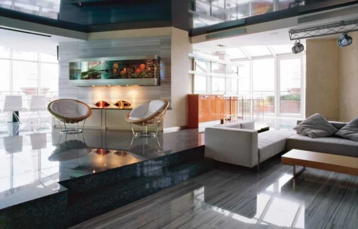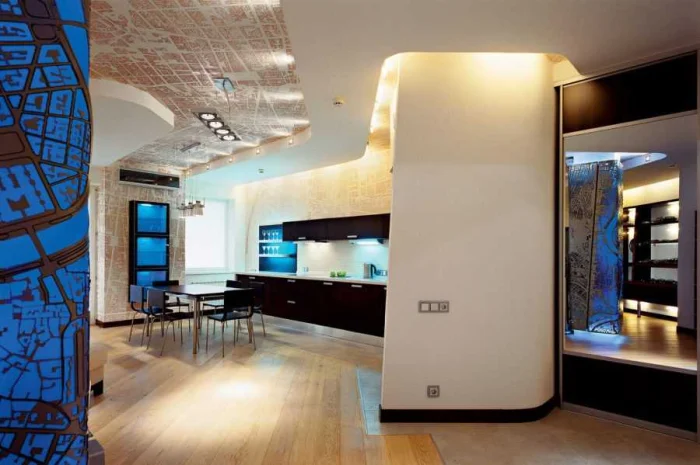 И да, натяжной и подвесной потолок – не одно и то же! Натяжной – это цельное полотно. Подвесной – конструкция из гипсокартона. Часто их комбинируют, создавая сложные многоуровневые композиции со скрытой подсветкой. Зрелище футуристическое.