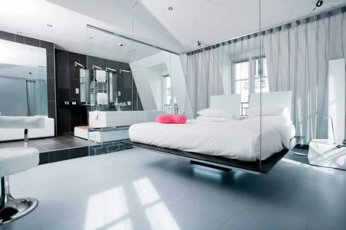 - Оптические эффекты: шкафы-купе с зеркальными фасадами (расширяют пространство), мебель на колёсах (можно переставлять, меняя планировку).