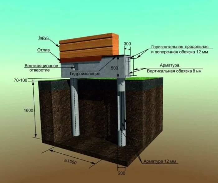 | Экономия на земляных работах | Не нужно копать котлован — только скважины | Участки с перепадом высот, каменистая почва |