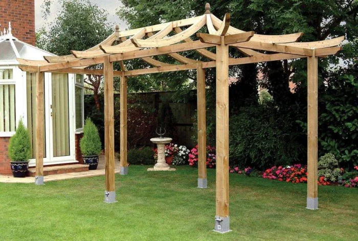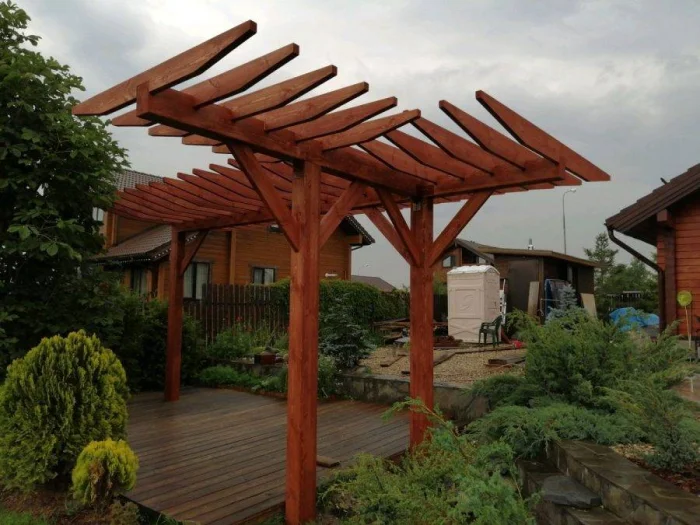 Традиционно перголы делают прямоугольными или квадратными. Но зачем ограничиваться? Форма должна вытекать из задачи: