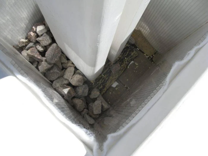 - Железобетонные трубы-стаканы, в которые вставляются и бетонируются опорные столбы.