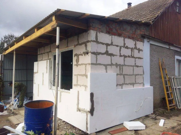 Здесь все наоборот. Утепление снаружи — это правильный путь с точки зрения физики. Точка росы выносится наружу, конденсат не скапливается в стене, и внутреннее пространство остаётся нетронутым. Но приготовьтесь быть синоптиком: работы возможны только в сухую и теплую погоду. Дождь или мороз ставят на них крест.