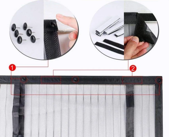 - Закрепите анкеры (крючки, карниз) над проёмом.