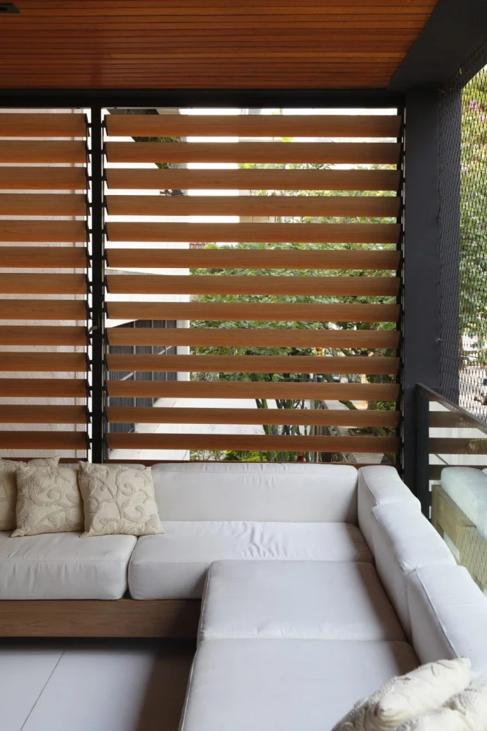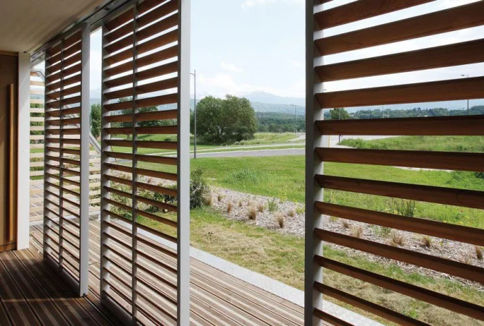 Главный козырь дерева — его бессмертная эстетика. Деревенский шарм, ощущение истории, благородство фактуры. Такие жалюзи подойдут к любому стилю. Их изготавливают из разных пород, а при желании можно подобрать оттенок или покрытие. Это всесезонное решение, защищающее и от дождя, и от ветра.